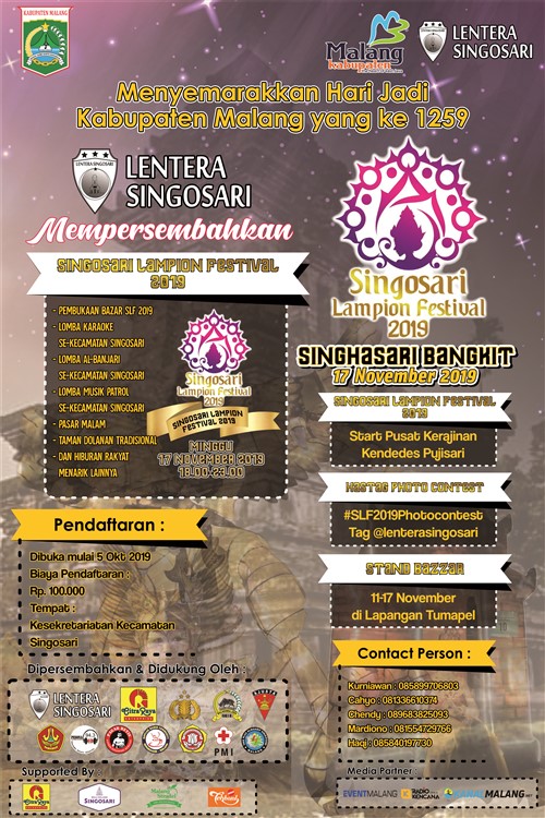 Festival Lampion Singosari Singosari lampion festifal 2018 full. Dikarenakan ada kegiatan singosari lampion festival, malang. Hallo masyarakat malang raya datang dan saksikan acara singosari lampion. Adalah sebuah gagasan dari camat singosari, eko margianto dalam rangka membuat kegiatan bernilai seni budaya yang diharapkan akan menjadi agenda rutin.