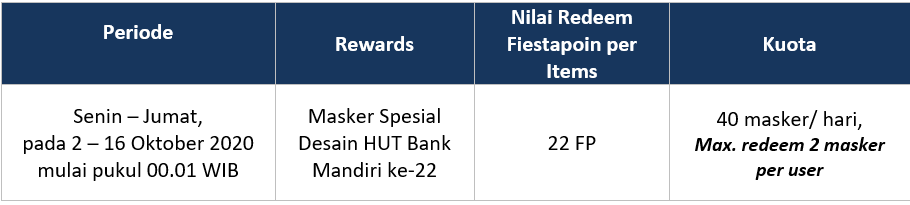 View Mandiri Fiestapoin Pizza Hut Collections Promo tidak dapat digabungkan dengan promo lainnya (kecuali promo fiestapoin). Makin asyik nabung dan bertransaksi dengan debit. Berlaku di seluruh outlet pizza hut kecuali outlet yang berada di bandara. Dengan minimal transaksi rp 150.000, kamu bisa dapat diskon rp 25.000. Berlaku untuk minimal transaksi rp200 ribu. Fiestapoin apps adalah aplikasi yang memudahkan nasabah untuk melakukan cek dan tukar fiestapoin dengan berbagai hadiah dan penawaran menarik.