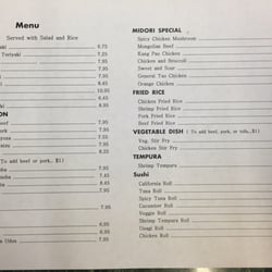 Midori Menu Check out our midori menu pages selection for the very best in unique or custom, handmade pieces from our shops. We look forward to serving you in the new year! Simply select the menu items you want, add them to your cart and checkout. The midori japanese restaurant is known for serving all your favorite japanese dishes, including seaweed salad.