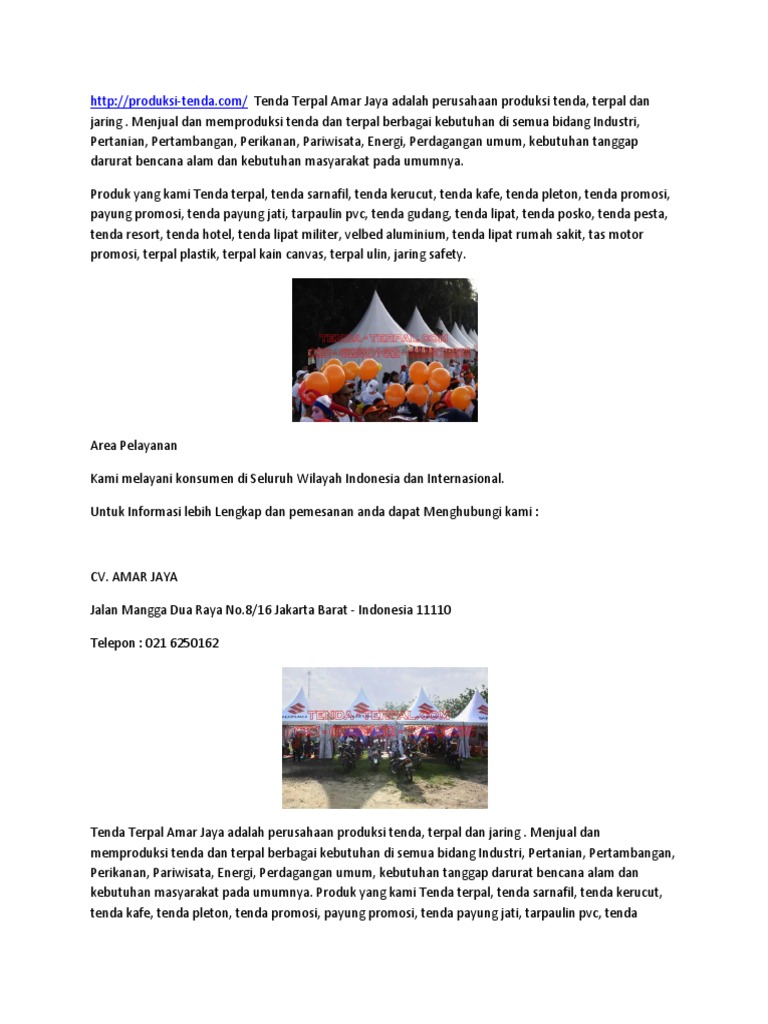Jual Tenda Di Serang CV TendaJakarta Pabrik Tenda Cetak ... from jualtendaserang.files.wordpress.comSewa Tenda Pramuka Jakarta Jasa sewa kursi futura di jakarta february 1, 2016. Sewa tenda murah jakarta merupakan layanan sewa tenda pesta yang melayani konsumen yang berada di wilayah jakarta & sekitarnya, seperti depok, bekasi dan bogor. Beli produk tenda pramuka tenda berkualitas dengan harga murah dari berbagai pelapak di indonesia. Sewa tenda jakarta 2019 hub 085710005000 dan sekitarnya diatasi sama tenaga yang ahli dengan barang berkualitas tinggi? Tenda camping tenda kemah pramuka 3 x 4 x 1,75 meter tenda beregu. Untuk masalah sewa tenda di wilayah jakarta timur, anda bisa datang ke kantor yang beralamat di pinang ranti, jakarta timur. Harga beranekaragam mulai dari rp250 ribu per tiga jam hingga rp10 juta per 24 jamnya. Menyewakan tenda murah di jakarta segala model untuk keperluan resepsi pernikahan,pameran, khitanan dll.