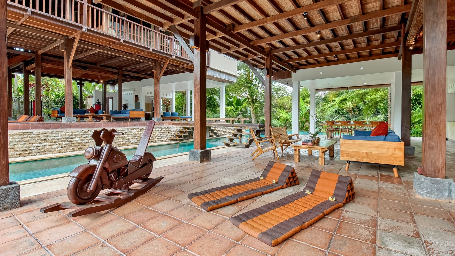 Villa atas awan is a serene complex of two magnificent wooden houses separated by a stunning 30 meter swimming pool.
